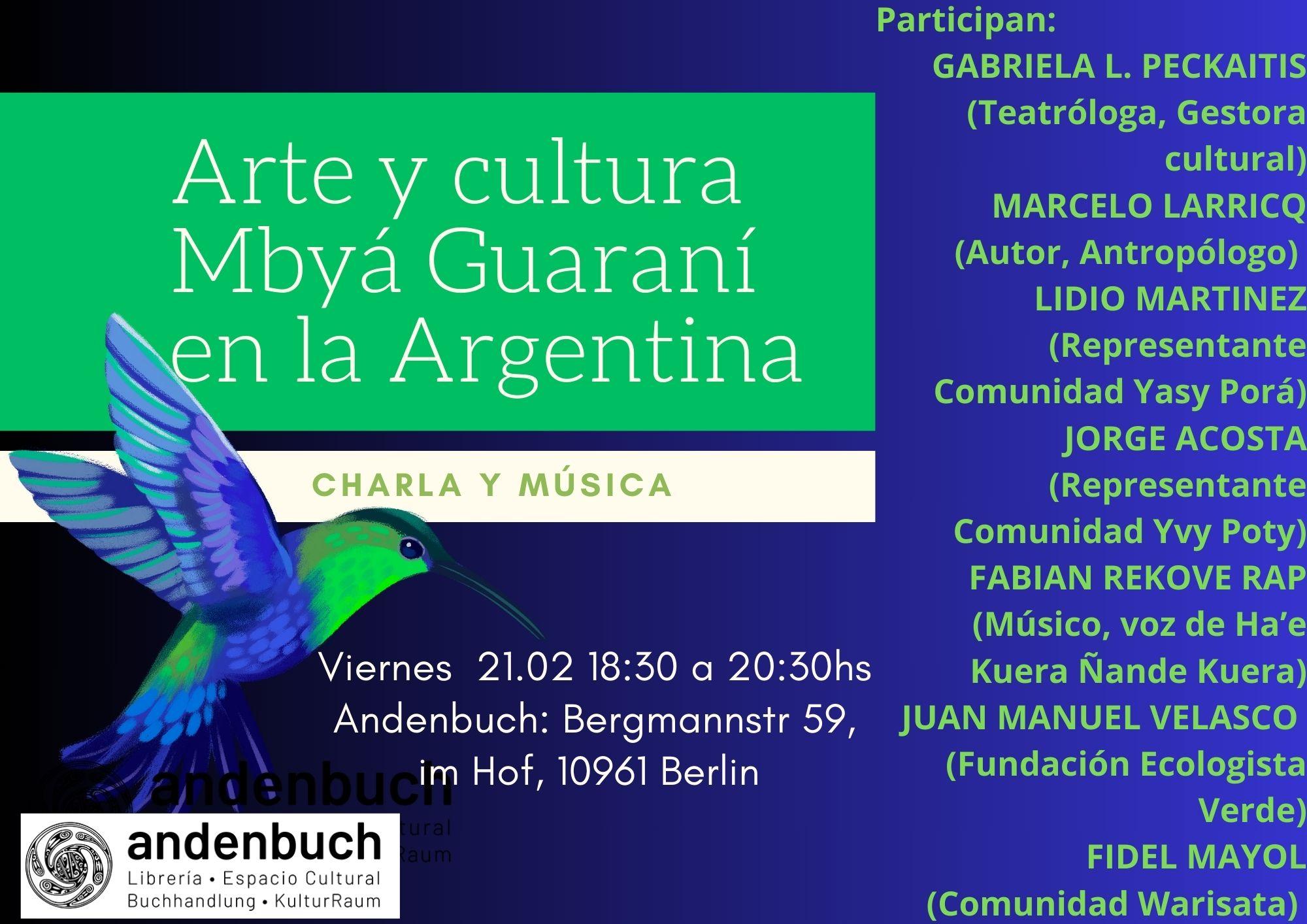 A partir de la pregunta: desde dónde se posiciona y hacia dónde se dirige la cultura y el arte Mbyá Guaraní en la Argentina actual, y con el objetivo de crear un valioso diálogo e intercambio con el público, el encuentro propone una charla con personas de áreas diversas especializadas en el tema y miembros de comunidades Mbyá Guaraní de la Argentina.