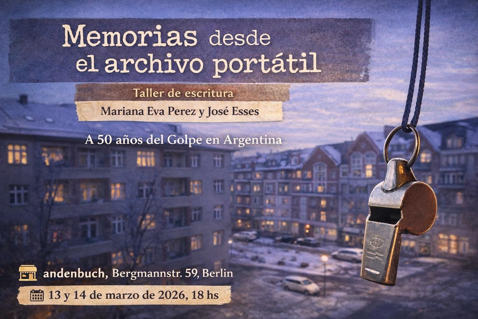 Serán dos encuentros presenciales en los que produciremos textos y pensaremos cómo darlos a conocer, en el marco de los cincuenta años del golpe, para contribuir desde Berlín a la construcción de la memoria colectiva.