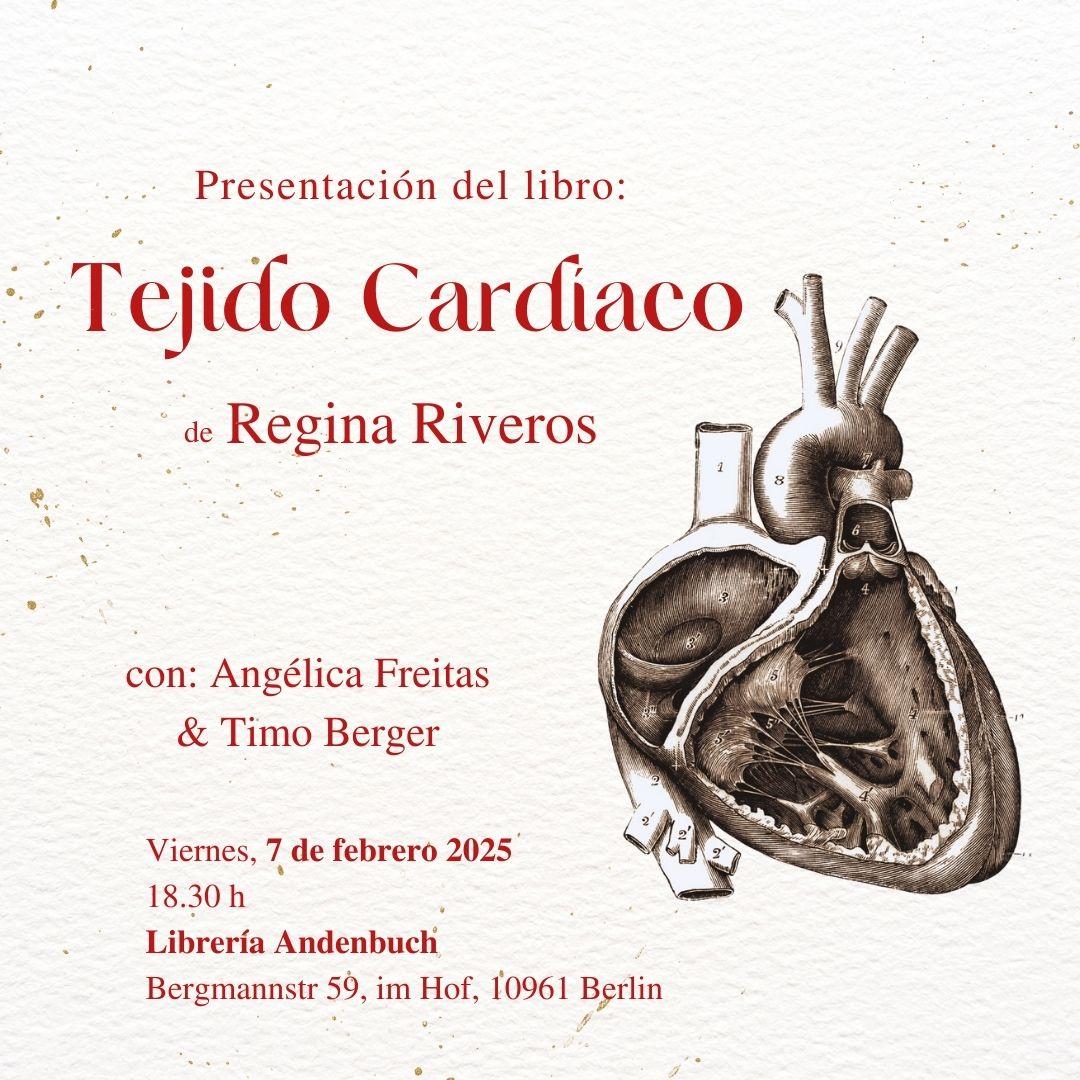 Al inicio, Regina hará una presentación de algunos de los poemas de su libro, seguido por una conversación con les presentadores sobre la escritura, su proceso artístico y su vida en Berlín.